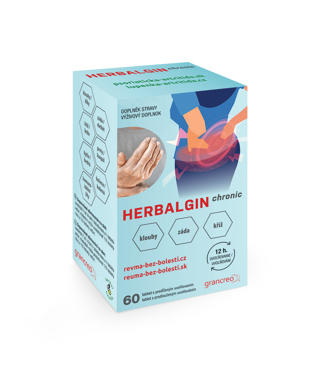 HERBALGIN chronic vsebuje originalno pripravljeno zeliščno mešanico rudbekije in akacije, v tabletah s postopnim sproščanjem. Primeren je za ljudi z dolgotrajnimi vnetji v telesu, revmo, osteoartritisom sklepov ali zapestnih mišic, dolgotrajnimi bolečinami v križu in hrbtu, dolgotrajnimi bolečinami ali vnetjem živcev, dolgotrajnim vnetjem črevesja, dolgotrajnim vnetjem bronhijev (npr. astma), hemoroidi, krčnimi venami ali bolečimi krčnimi žilami (krčne žile), migreno.
