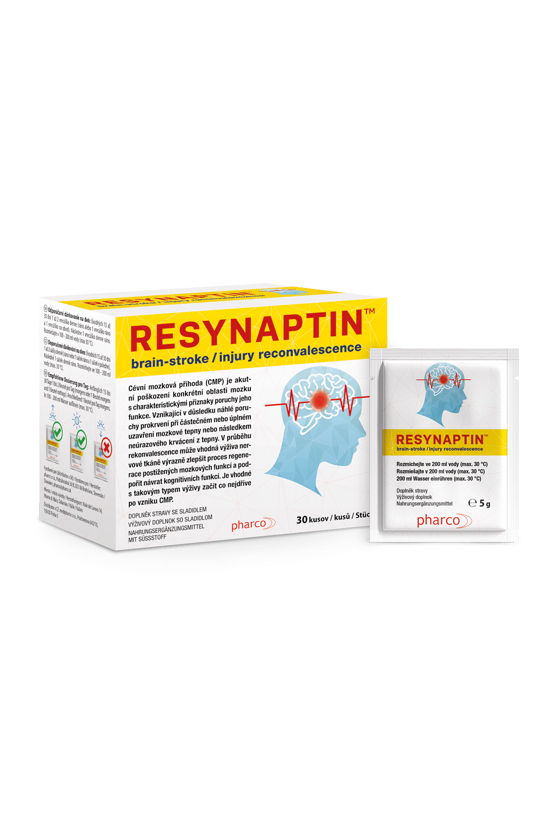 RESYNAPTIN vsebuje kompleks vitaminov, rastlinskih izvlečkov in številne druge znanstveno dokazane sestavine, primerne za prehrano živčnega, možganskega tkiva in sinaptičnih funkcij. Na voljo je v obliki vodotopnega praška. Pred uporabo se je priporočljivo posvetovati z zdravnikom.